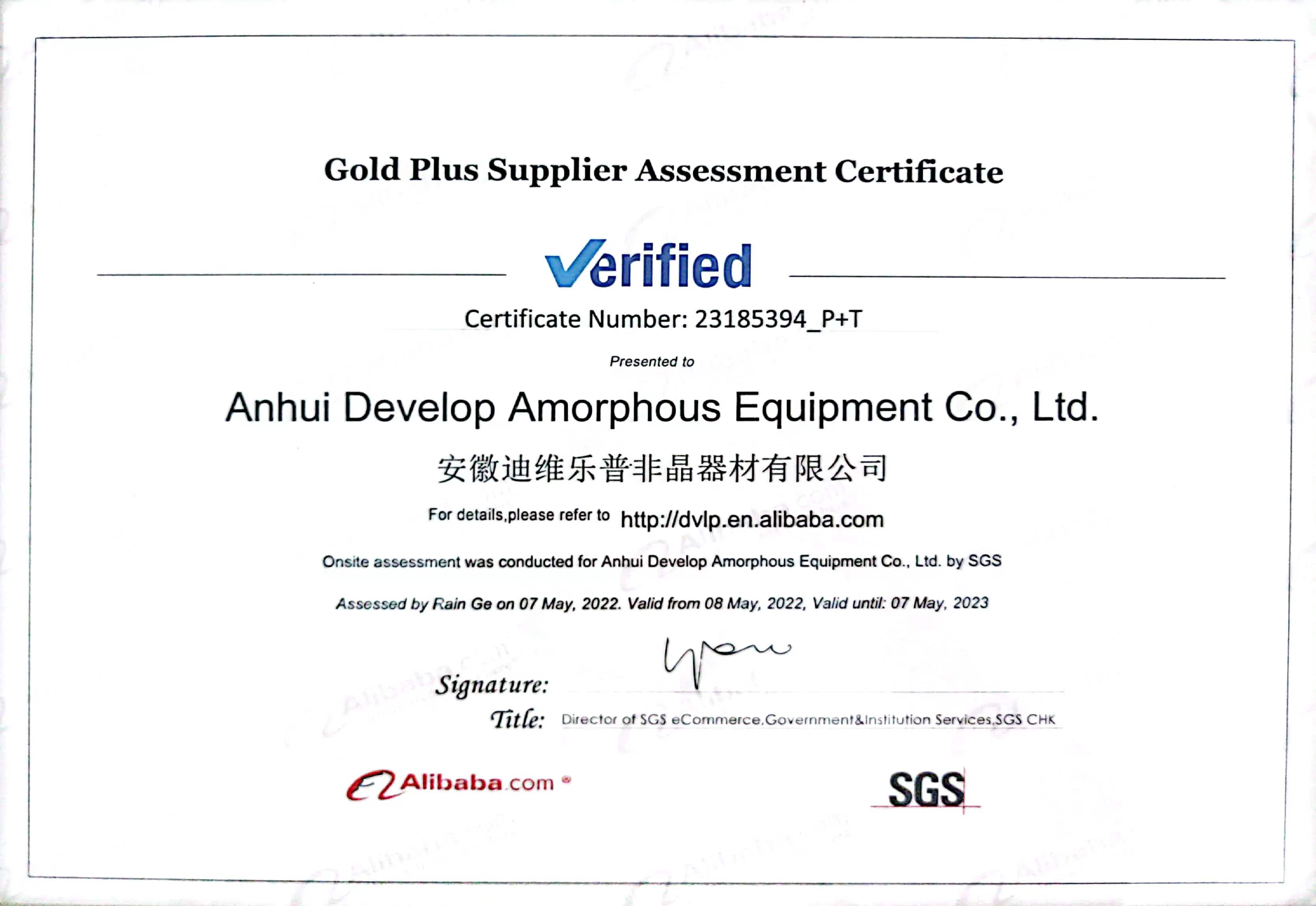 SGS質(zhì)量體系證書